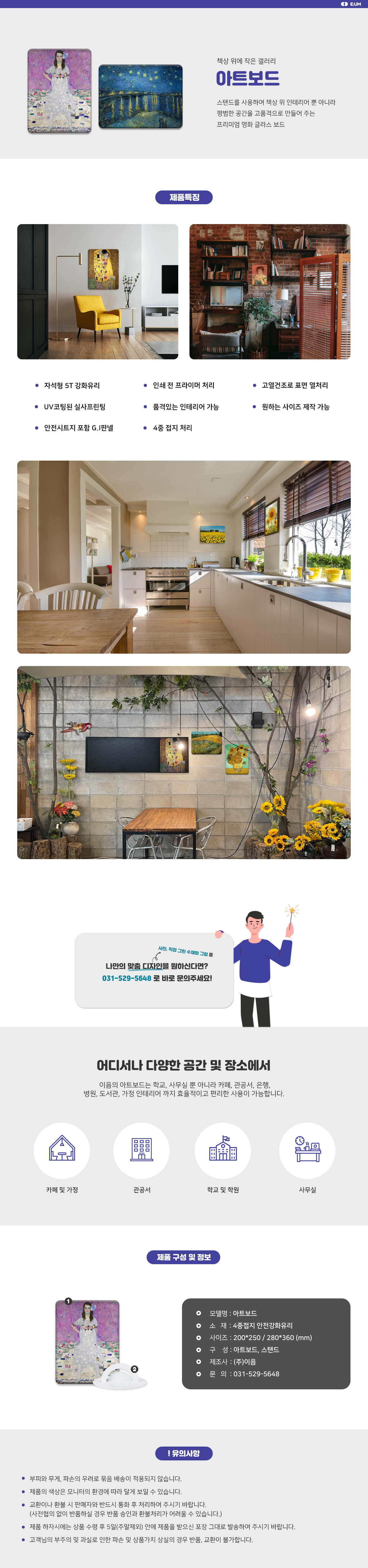 명화를 사용하여 인테리어 활용성 높은 유리 메모 보드